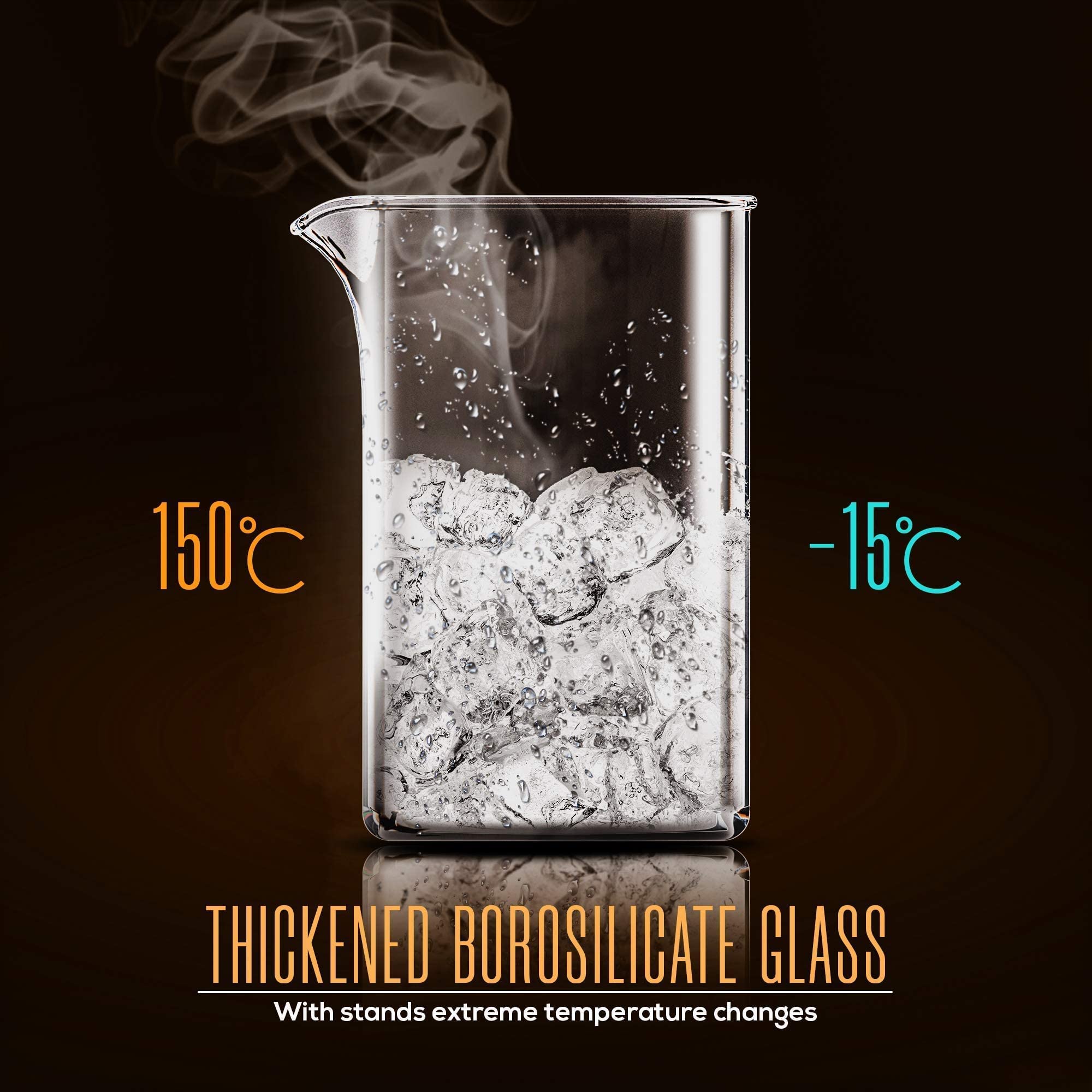 • DURABLE BOROSILICATE GLASS: The French press glass is expertly made to withstand rapid temperature changes. It is resistant to outside odors or chemical changes and maintains the original odor and flavor, allowing you to savor the natural coffee taste. The sturdy material and super-compact design ensure easy handling and durability in the long run.