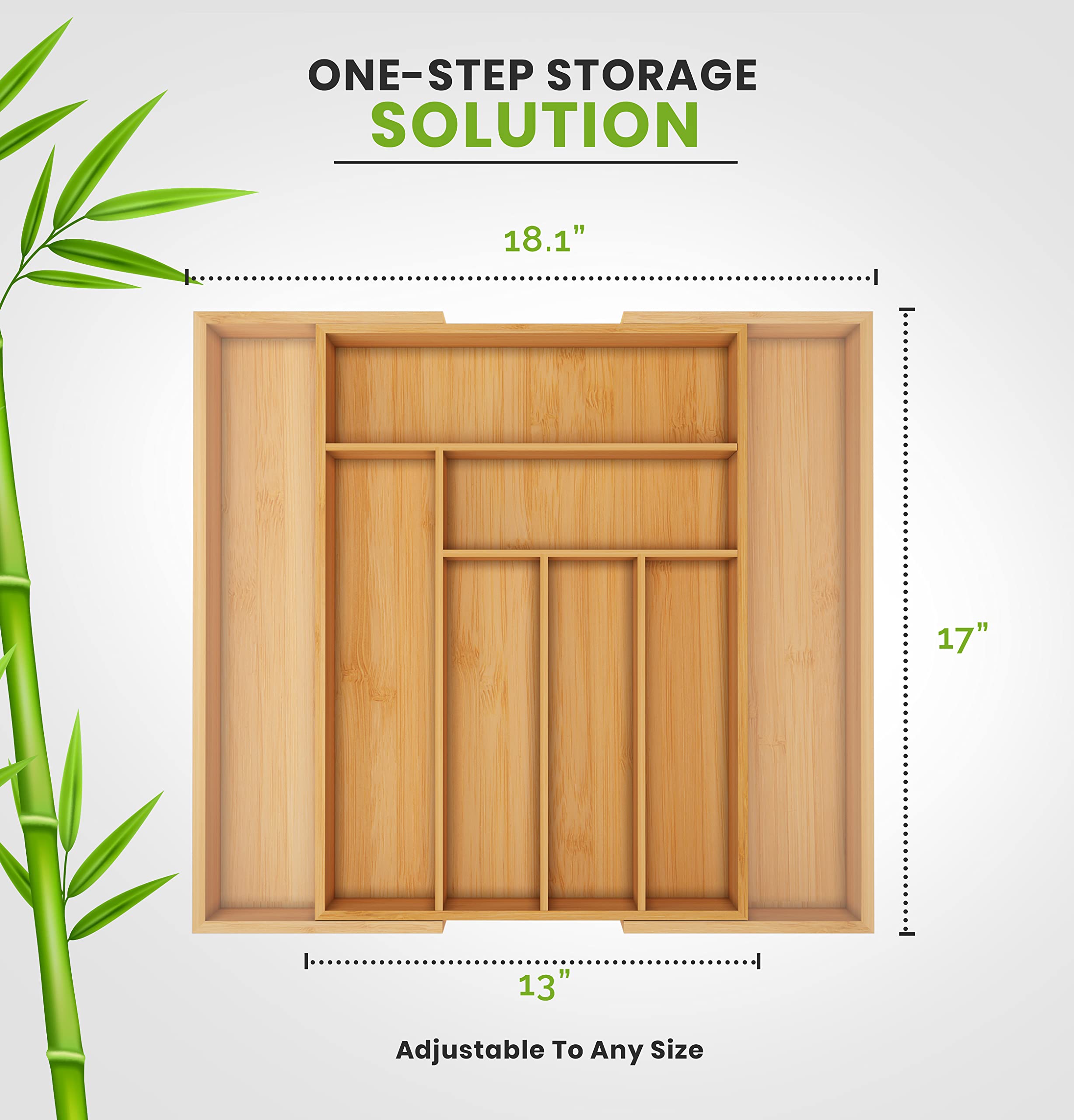 • Bamboo organizer is sized to fit almost any standard drawer to maximize storage space