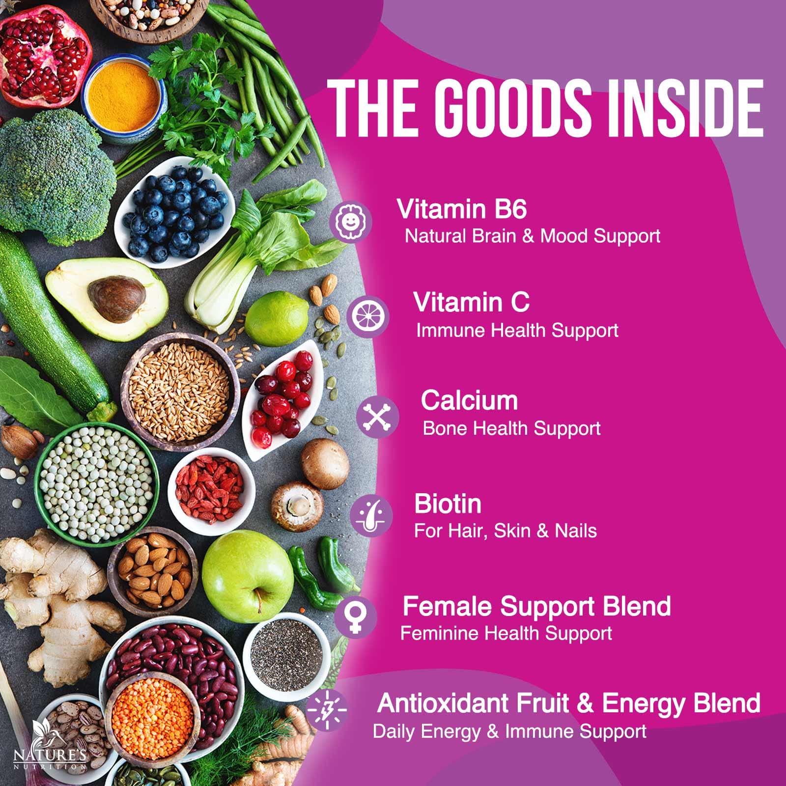 - Womens Multivitamin: Nature’s Nutrition Daily adult multi vitamin for women made for adults woman health support best multivitamins supplement 40 50 over with vitamins a b c d and e day natures mutivitamin plus multivitaminas para mujeres multivitaminico vitaminas free of gummies gummy iron supplements